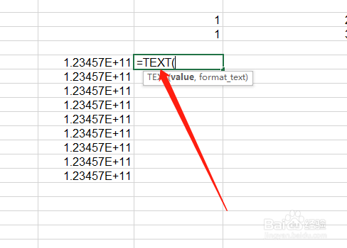 1.首先打开Excel数据表,输入text公式。
