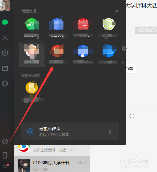 在客户端的最左侧下放,找到小程序按钮;