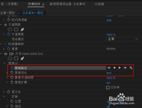 在结果控件中点击蒙版,设置成仙大一点,打上羝帧。
