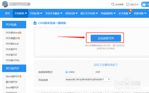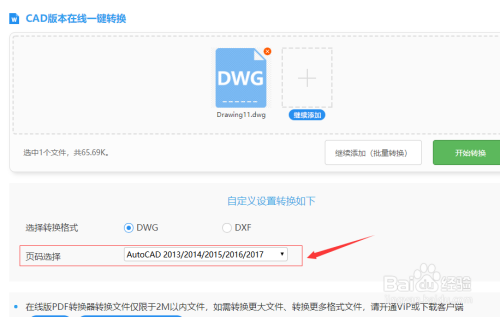 进入一个在线CAD版本转换网站,选择当地文件上传。