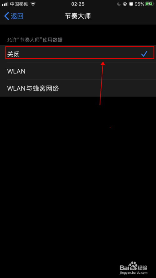 5.选择“封闭”,即可设置该应用不许可利用WIFI及蜂窝收集