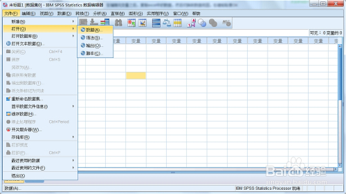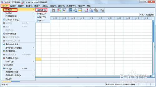 首先是打开spss本家儿界面,然后点击-文件-新建-数据