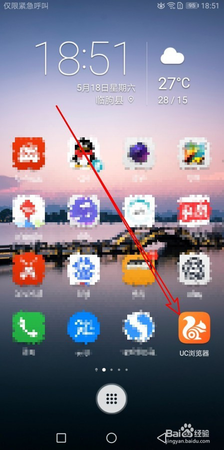 在手机屏幕上摆布滑动,点击UC浏览器的图标。