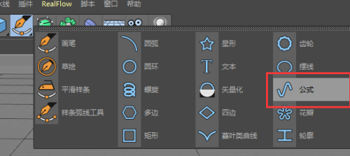 1、打开C4D软件,在样条东西栏中选择建立一个公式样条。