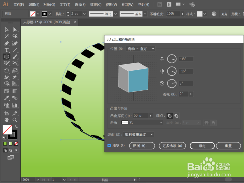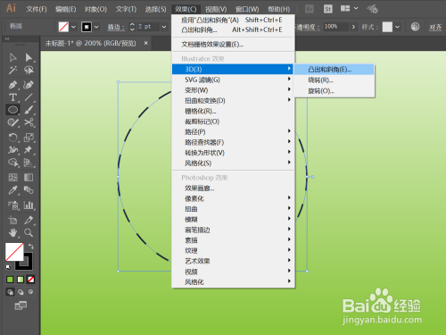 回到本家儿页面,选择该图案,并依次执行“结果”-“3D”-“凸出和斜角”操作;