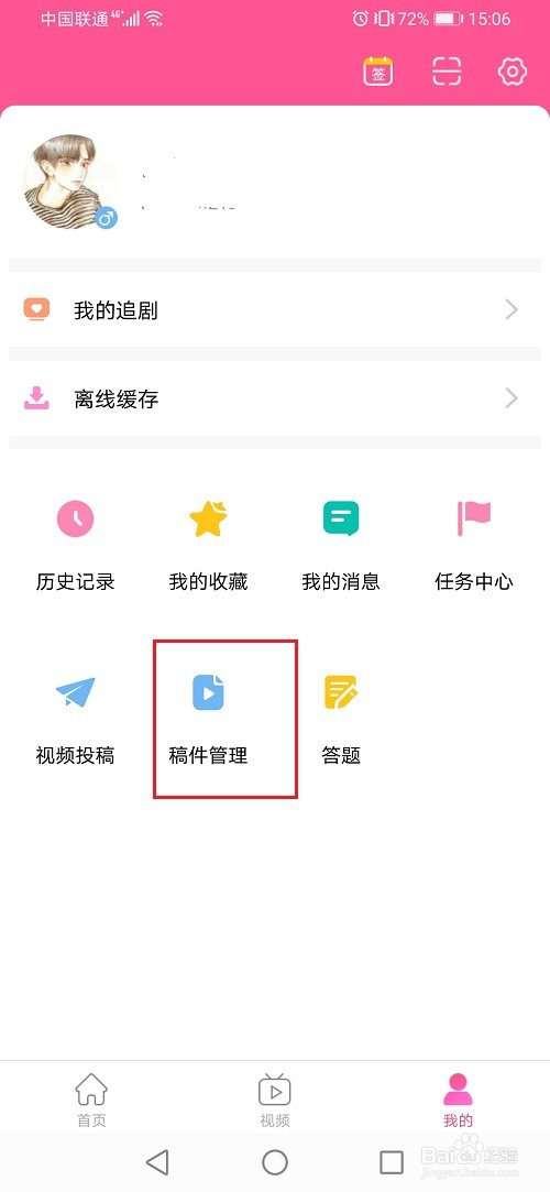 第二步进去韩剧TV我的界面之后,点击稿件办理