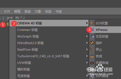 2、新建一个文本样条对象。快捷键ctrl+D调出工程设置面板,将帧率点窜为24帧/秒。选中空白对象,右键选择“CINEMA4D标签”-“XPresso”选项。