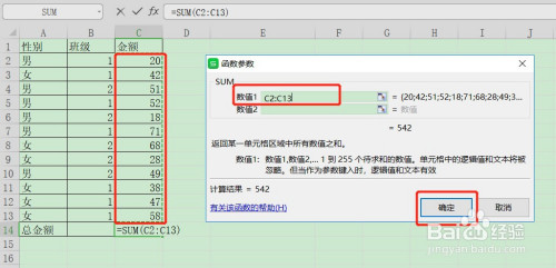 SUM数值1输入需要乞降的区域或直接在表格里面选出需要乞降的区域,