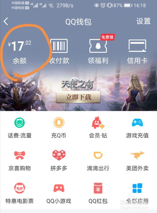 进入之后,点击本身的“余额”一项。