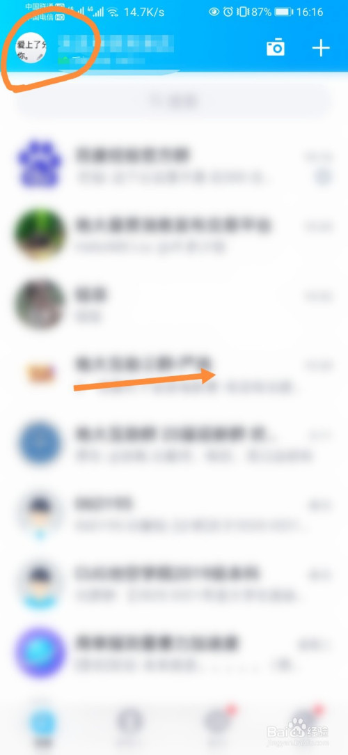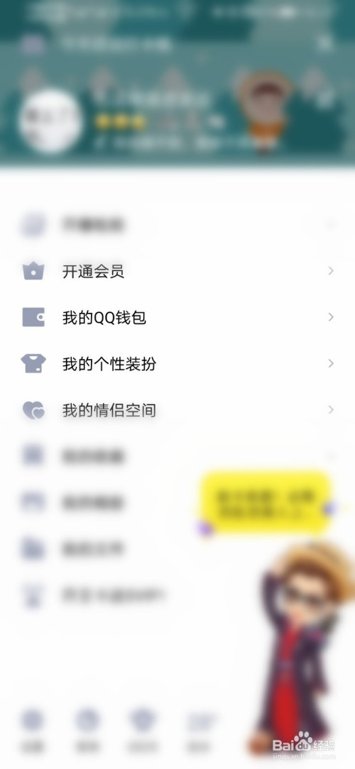打开QQ,本家儿界面右划或者点击本身头像。