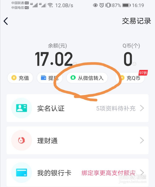 点击进入之后,即可看见余额数值下面有”从微信转入“一项。