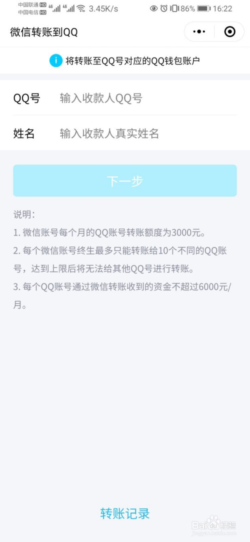 初次利用改功能需要将本身的微旌旗灯号和QQ号绑定到一路,按要求输入即可。完当作后输入让渡金额即可。
