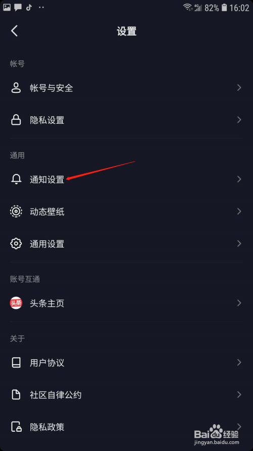 进入设置页面后,点击通知设置选项;