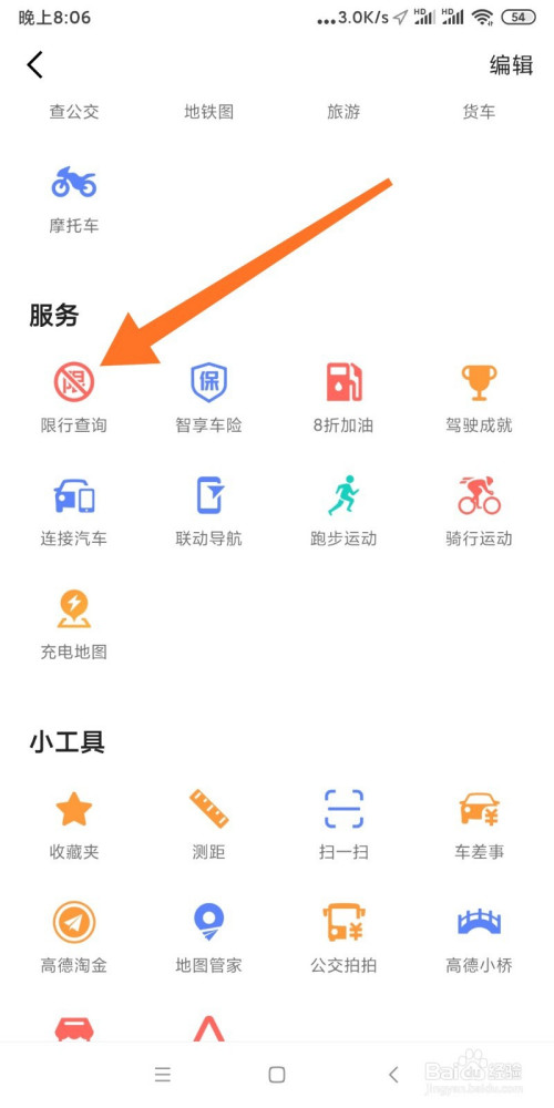 在办事栏面前目今找到【限行查询】按钮并打开。