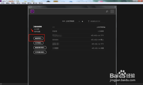 首先在电脑中打开PR软件,点击新建项目,建立剪辑项目。