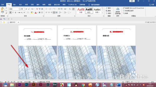 2.将它们进行分页之后分为三页,下面起头进行添加布景。