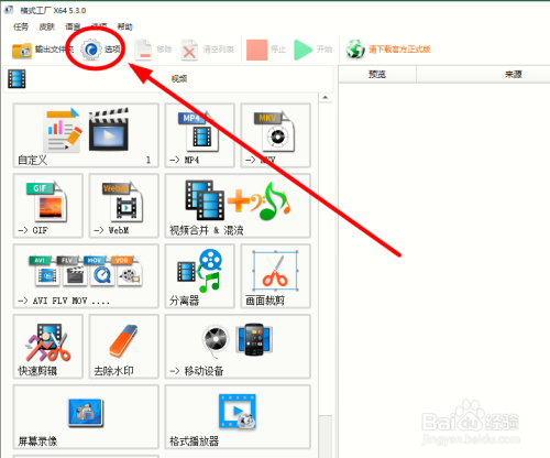 2、进入程序本家儿页,找到【选项】选项卡单击