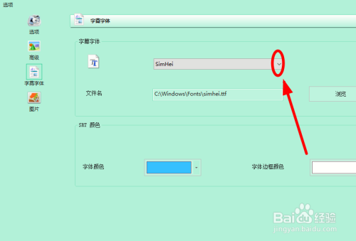 在右边窗口,找到【字幕字体】后面的下拉按钮点击