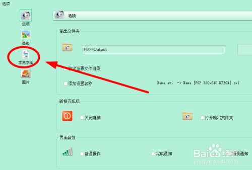 3、在【选项】对话框中,左侧有四个选项卡,选择【字幕字体】选项卡