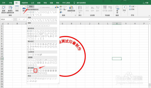 建造好印章的轮廓后,点击插入文本框按钮(如图所示)