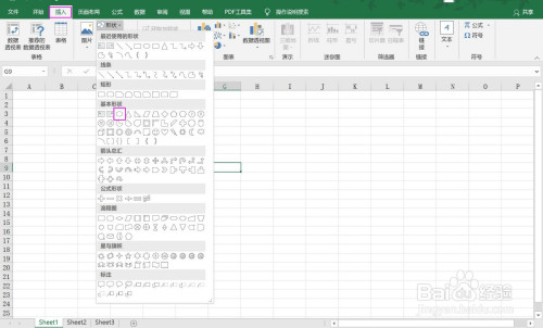 打开一个Excel表格,点击插入=插入外形=选择卵形状(如图所示)