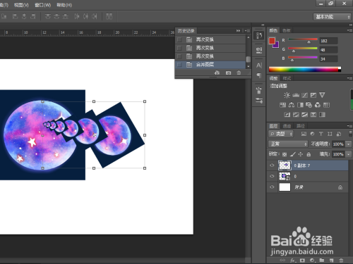 ctrl+J再复制一个图层,并对新复制的图层进行扭转缩放处置;