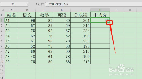 算出平均之后,按照上面的方式复制到下面算出其它行的平均值