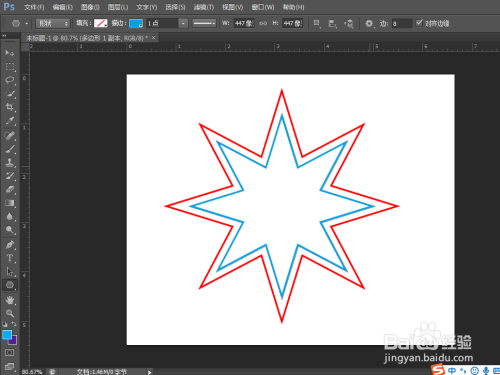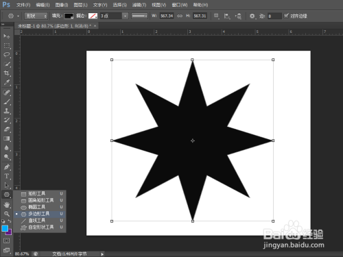 利用东西窗口的“星形东西”绘制一个八角星图案,可以看到此时图案默认为黑色填充;