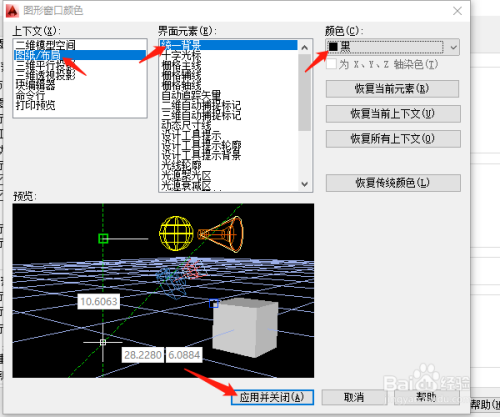第三,点开颜色处对话框,按图从左到右依次选择,然后点击应用并封闭。