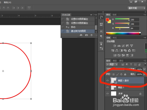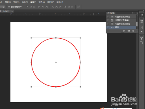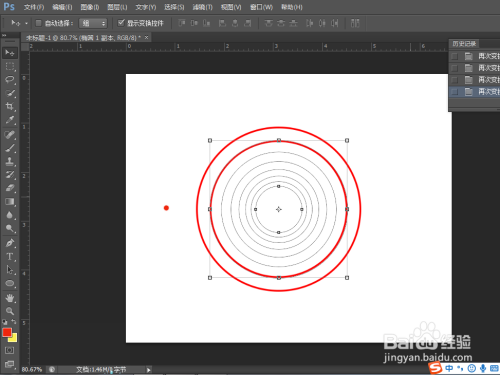 在新复制的图层上,同时按住shift+Alt键,拉动圆形,即可使圆形图案朝圆心等比缩小;