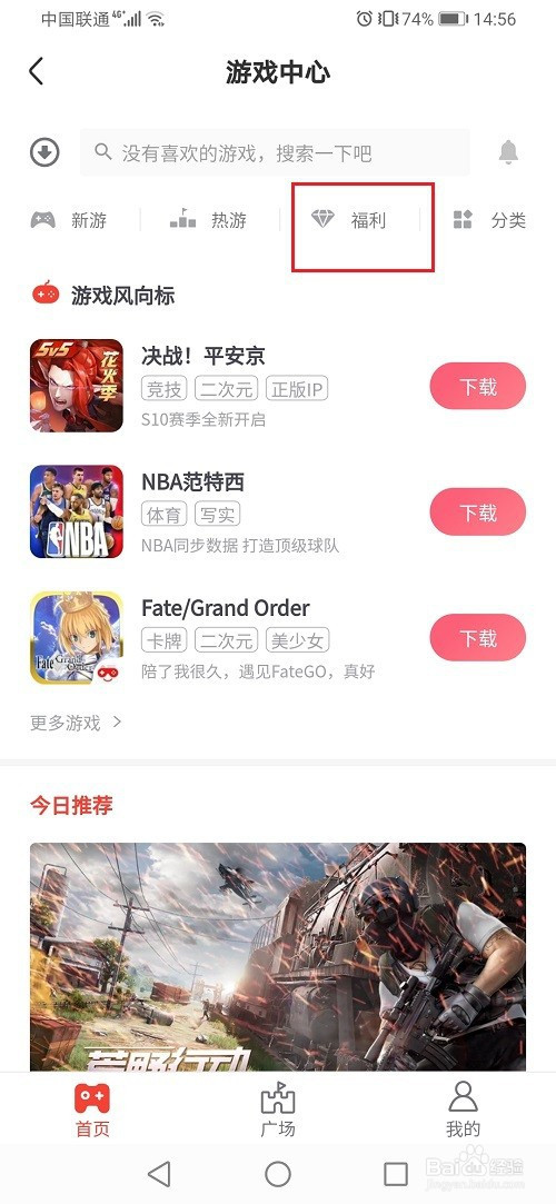 第三步进去游戏中间之后,点击福利
