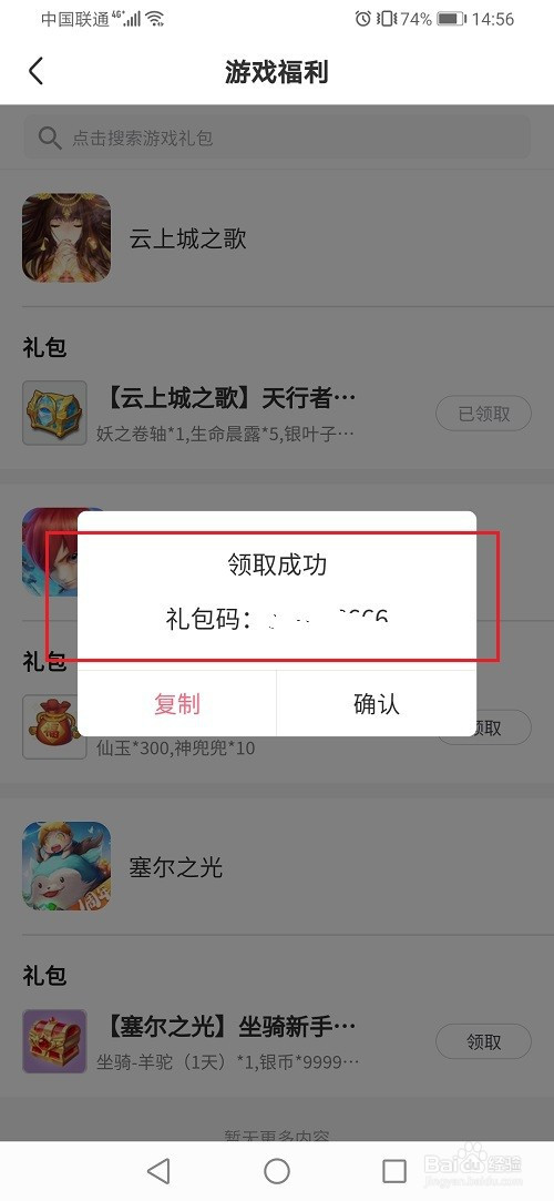 第五步点击领取之后,可以看到已经领取游戏礼包了
