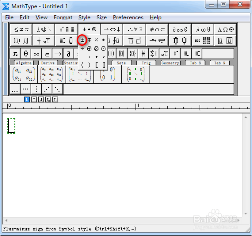 在菜单栏中,找到并点击正负符号,具体如图所示: