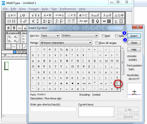 在中心的符号面板中,找到并点击“正负号”,并依次点击“插入”与“封闭”,具体如图所示: