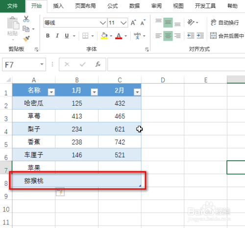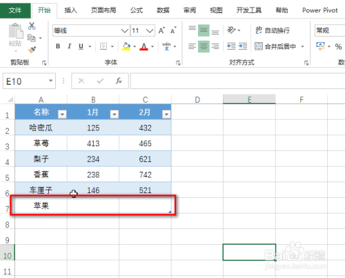 在表格数据结从头至尾处,输入一个名称,并Enter键,就会主动生当作有格局的数据空行,具体如图所示:
