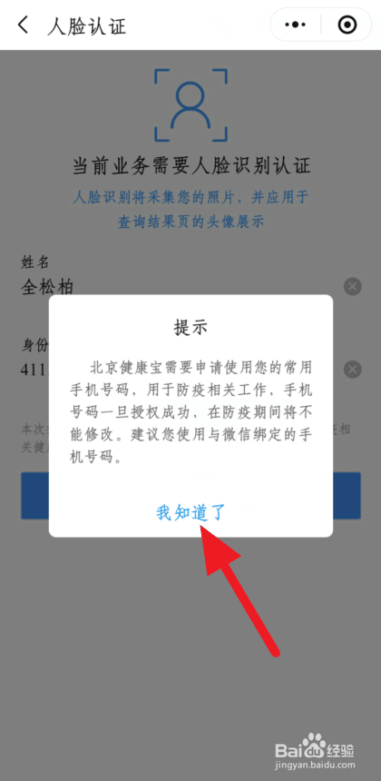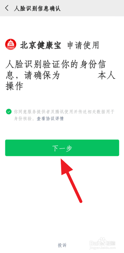 手机号码授权当作功今后,点击【下一步】,然后就可以进行【人脸识别】。