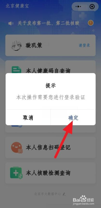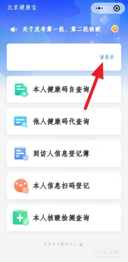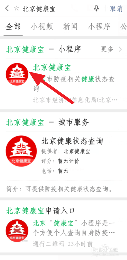 首先在微信上搜刮【海说神聊京健康宝】,点击进入小程序。