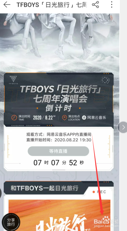 进入【TFboys七周年演唱会】倒计时界面下拉到底部。
