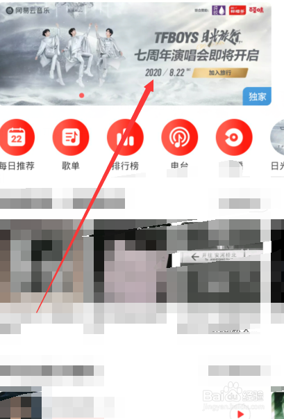 1、进入网易云首页点击【TFboys七周年演唱会】活动。