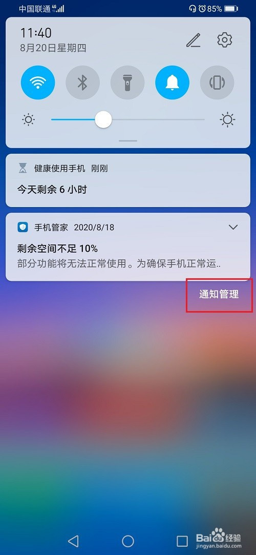 第二步若是我们想封闭顶部沙漏图标的话,打开通知栏,点击通知办理