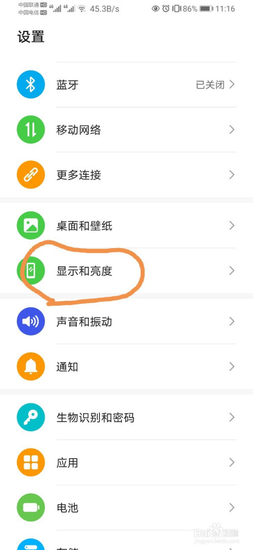 进入设置后,下拉界面找到“显示与亮度”这一项。