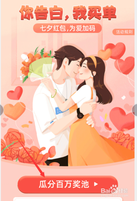 搜刮栏目输入【七夕红包】点击搜刮进入【七夕红包,为爱加码】。