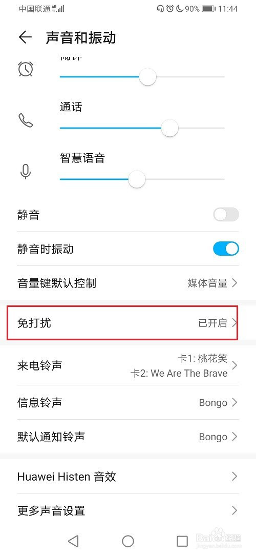 第三步进去声音和振动之后,点击免打搅