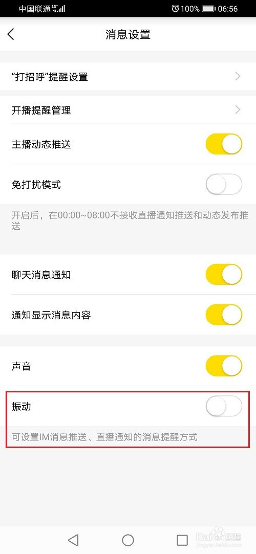 第四步进去动静设置界面之后,可以看到振动是开启的