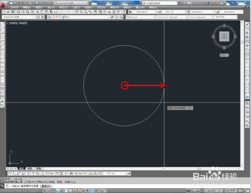 点击【圆东西】,按图示确定一个圆心点后,绘制出一个半径为100的圆形图案;