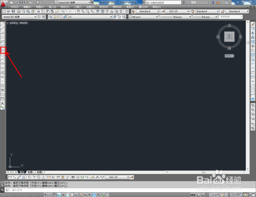 打开AutoCAD 2013软件,进入软件工作界面;