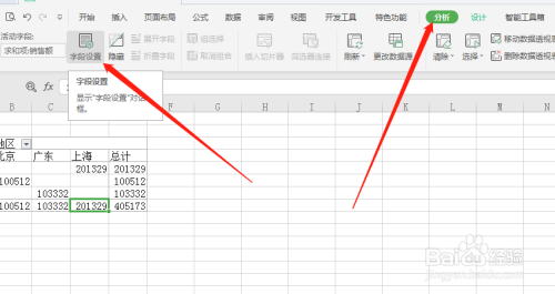 点击阐发,然后点击“字段设置”。