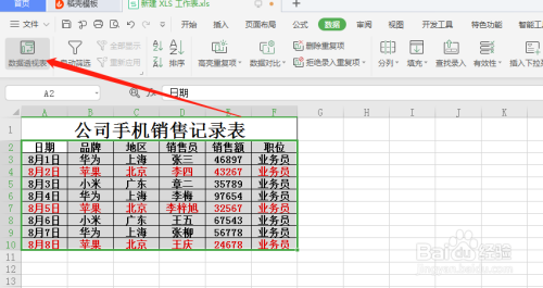 点击数据透视表。