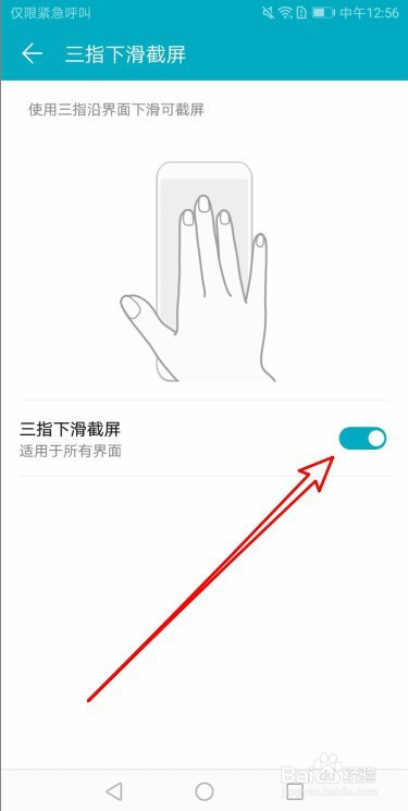 然后在打开的页面点击三指下滑截屏后面的开关,把它设置为打开的状况就可以了。