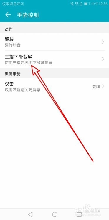 然后在打开的手势节制页面,点击三指下滑截屏的设置项。
